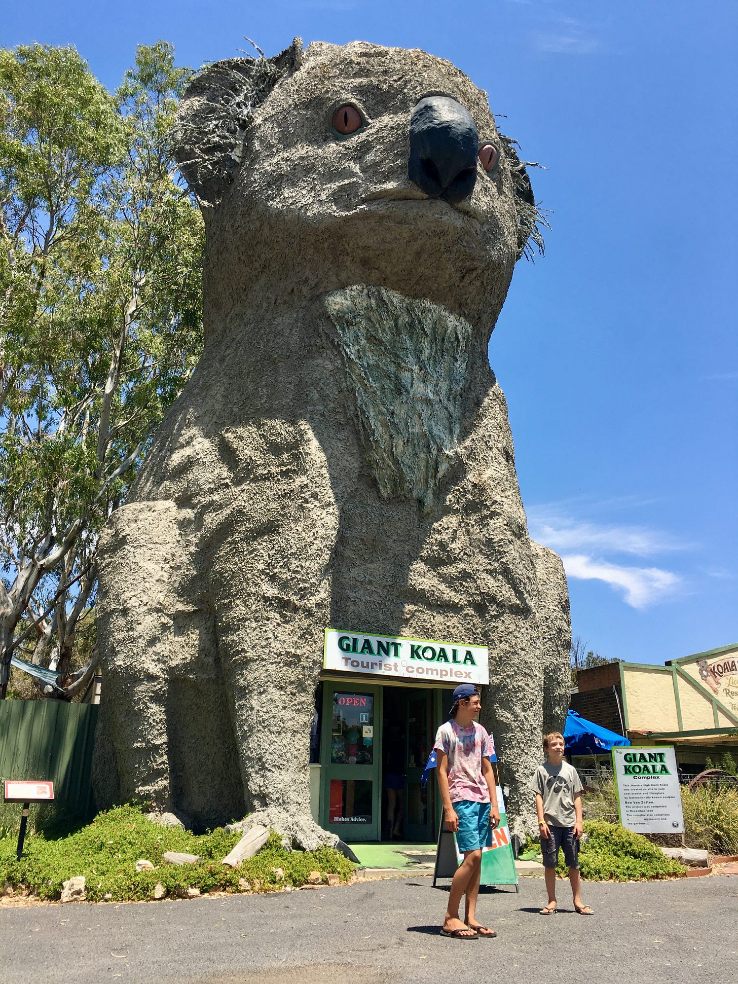 Our last day on the road had been an uneventful drive, along roads we’d driven many times before and through towns we knew, four hours that was extended due to a stop at the Giant Koala outside the town of Dadswells Bridge. You might think that on our last day on the road and so close to home that we could not be bothered to stop at another Big Thing after having visited approximately 49 of them during the past three months, and you’d be right. But the Giant Koala is an obligatory stop.